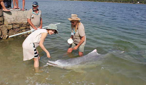 他們似乎都知道每天早上這邊都會有人來餵食海豚